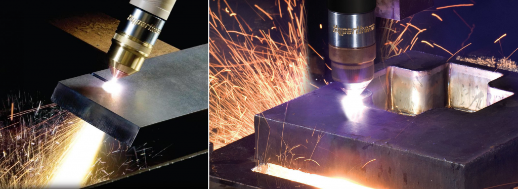 Плазменная резка металла – это один из самых эффективных и наиболее распространённых способов термической резки металла толщиной от 16 мм до 300 мм. Резка металла осуществляется струёй плазмы, возникающий при подаче соответствующего газа на электрическую дугу, которая образуется между электродом и поверхностью разрезаемого металла.